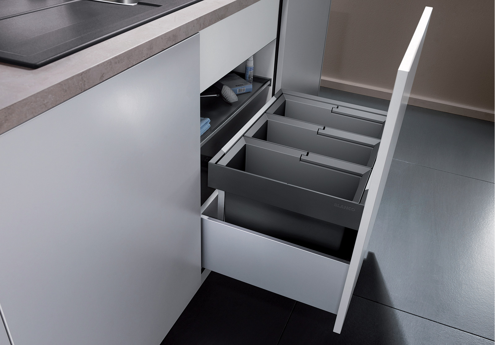 Система сортировки отходов FLEXON II 60/3 от Blanco воплощает философию бескомпромиссного качества, инновационного дизайна и функциональности, превращая самое активное место на кухне в продуманный, эргономичный и эстетичный центр для приготовления пищи.