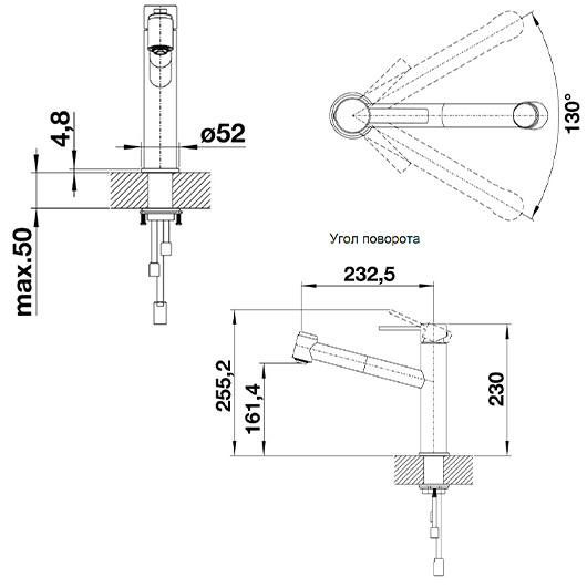 Высота излива, мм
