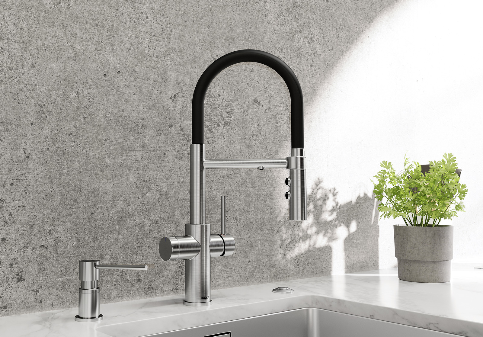 Смеситель CATRIS-S Flexo Filter 526705 от Blanco воплощает философию бескомпромиссного качества, инновационного дизайна и функциональности, превращая самое активное место на кухне в продуманный, эргономичный и эстетичный центр для приготовления пищи.
